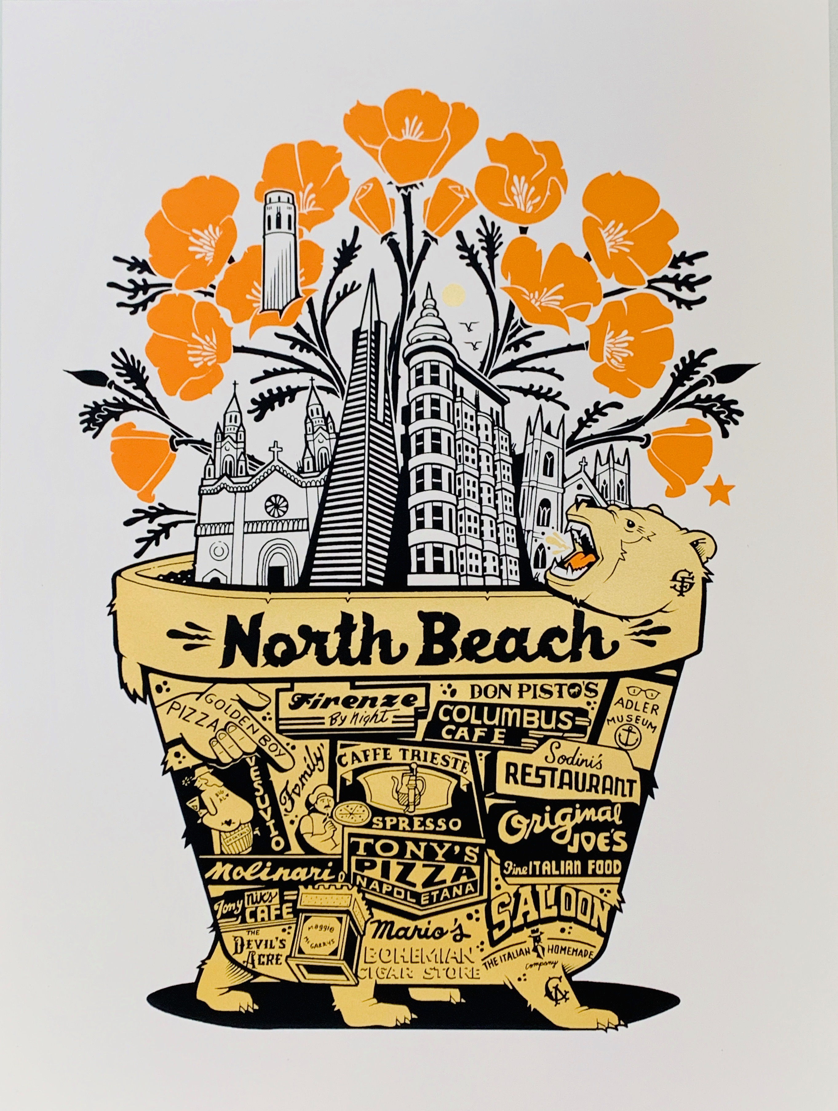 We are honored to support artist Jeremy Fish, as he releases a new limited edition print to raise money for friends working in the North Beach, SF service industry.
