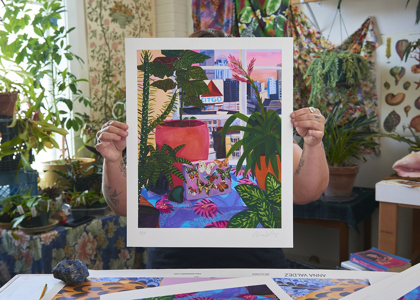 We are pleased to announced a new archival pigment print by artist Anna Valdez. This signed and numbered limited edition of Boston View with Taxidermied Butterflies will be available online Thursday, May 14th at the link here!