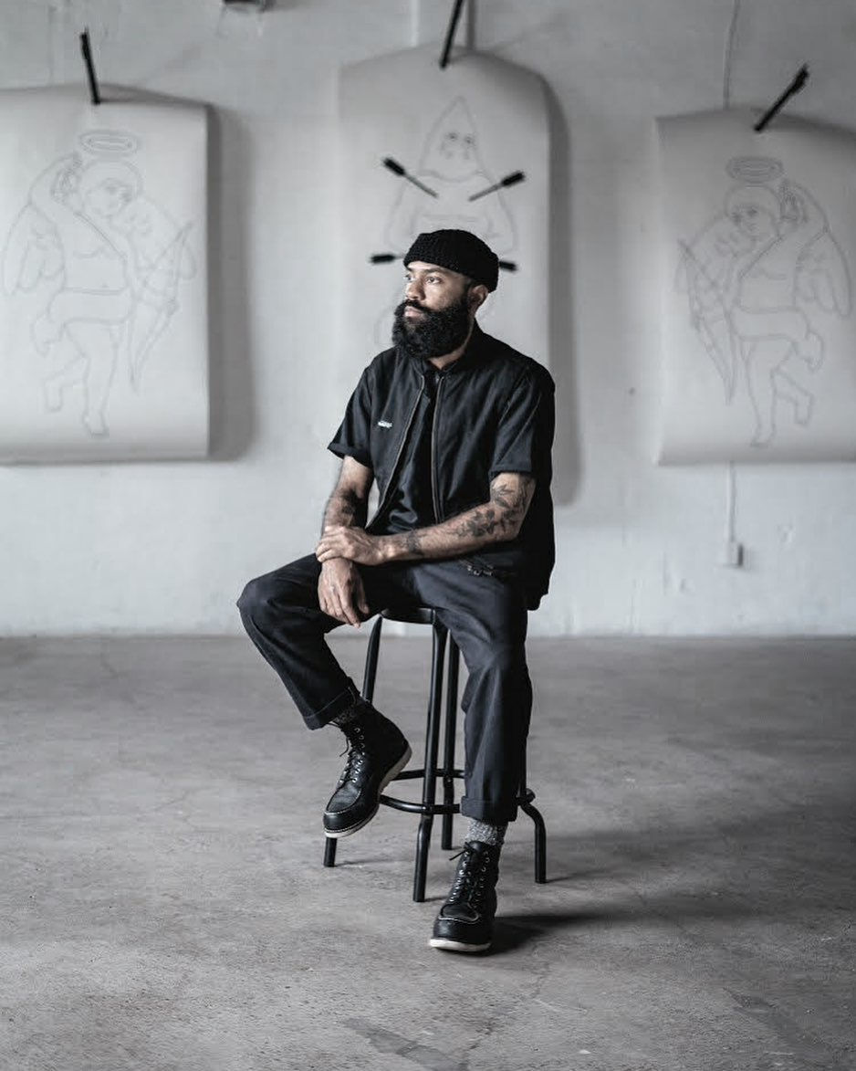 Christopher Martin is a southern-raised multi-media artist from North Carolina and is currently working in Oakland and San Francisco. Through his art, Martin tells the story of a young man coming from the South. While attending school at North Carolina A&T for graphic design, Martin was prone to create hand cut and sewn banners with logo-like images to tell a story relevant to his own culture and history. With cotton representing the toil/labor of those captured in the Trans-Atlantic Slave Trade, Martin hand-cuts and sews tapestry pieces that are representative of the modern-day experience of the African diaspora.