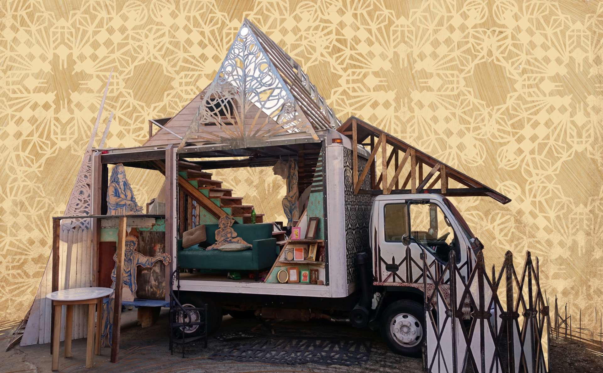 The House Our Families Built was conceived and orchestrated by Caledonia Curry. Performances developed by Jeff Stark and Irene Lazaridis. Project management by Marshall LaCount, with fabrication by Orien McNeill and Zack Tucker.