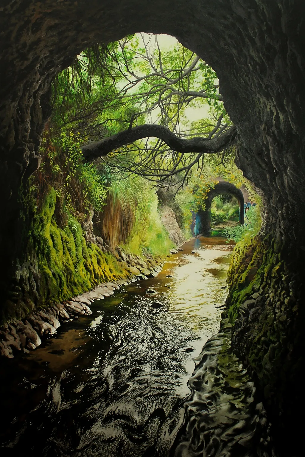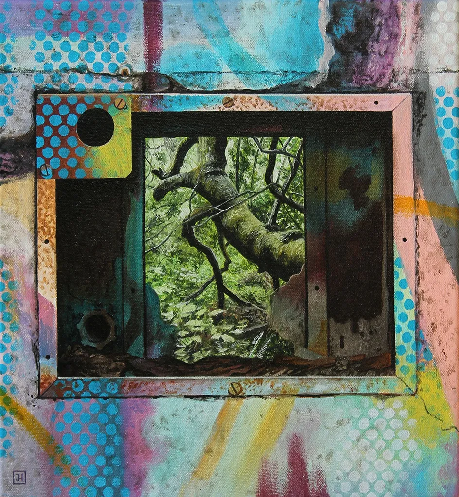 Hashimoto Contemporary is proud to present The Chaos Aesthetic, a solo exhibition by Oakland-based artist Jessica Hess. This new body of work explores abstraction of architecture and the landscape through decay, rendered in oil on canvas. Working from meticulously shot reference images the artist takes while exploring each location, Hess augments each composition adding and subracting textures, plant life and objects to create hyperreal scenes of dilapidated yet beautiful locales.